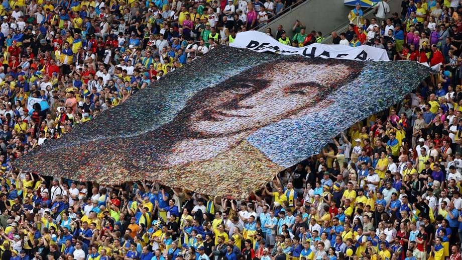 Durante o jogo da Ucrânia, os adeptos ucranianos mostraram uma faixa com a imagem de Nazariy Hryntsevich, conhecido pelo nome de código “Hrienka”.