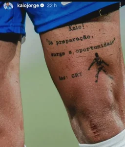 Kaio Jorge, jogador do Cruzeiro de Leonardo Jardim, mostrou nas redes sociais um conselho de Cristiano Ronaldo que tatuou na perna.