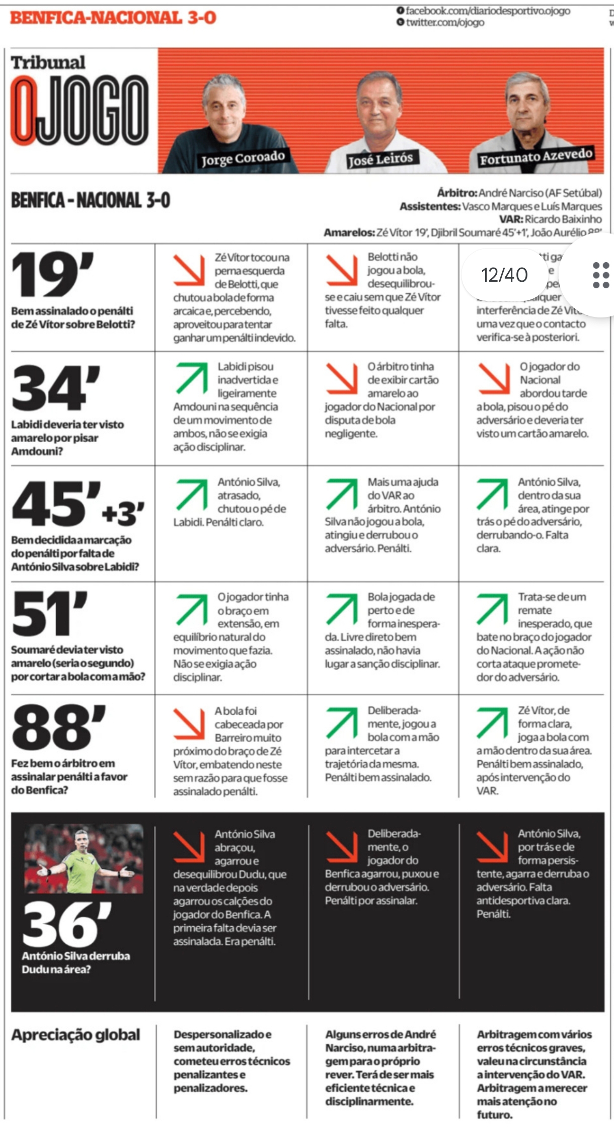Na sequência da vitória do Benfica sobre o Nacional por 3-0, Jorge Coroado, antigo árbitro, comentou os lances mais polémicos do jogo.