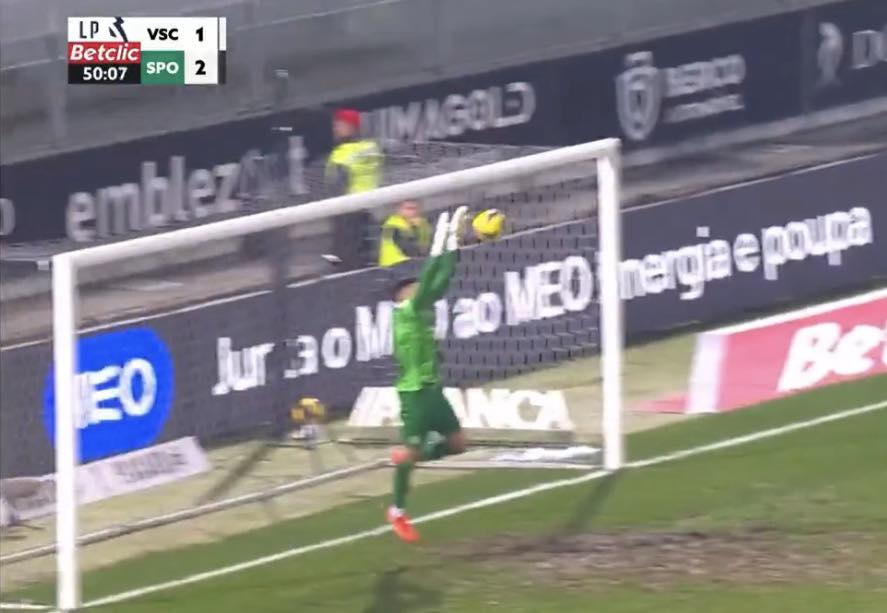 Aos 50 minutos, após remate de Telmo Arcanjo, Rui Silva (guarda-redes do Sporting) teve um momento infeliz que está a correr o mundo desportivo.
