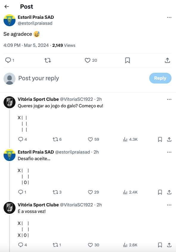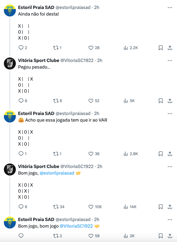 Os clubes envolveram-se num jogo do galo virtual, proporcionando uma interação animada entre as duas contas na rede social, num momento de puro fair play.